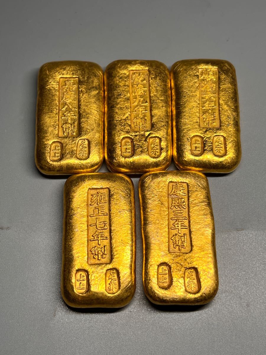 - 中国古金錠 五帝錢セット 上上 足赤 銘あり 厚重 置物 文鎮 骨董品 貴重