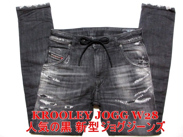 > 即決 シックな黒 NEW新型 クルーリージョグジーンズ DIESEL KROOLEY JOGG ディーゼル W28実78 ストレッチ細身美脚デニム メンズ4