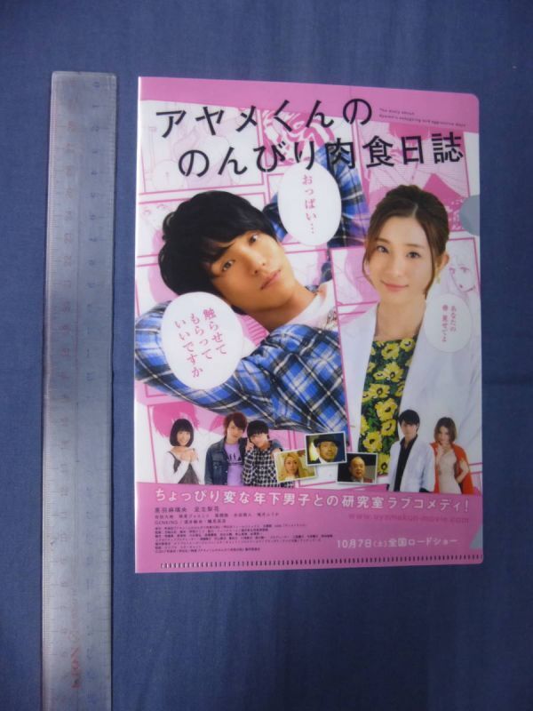 > ◆映画グッズ「アヤメくんののんびり肉食日記」前売り特典?ミニクリアファイル 黒羽麻璃央 足立梨花 2017年 町麻衣の漫画が原作