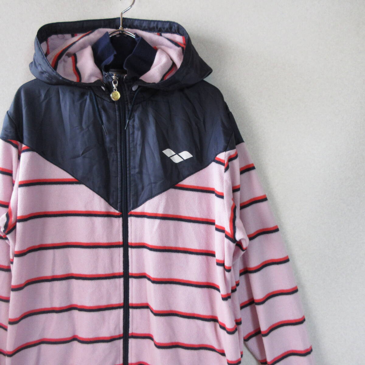 > ○美品 arena アリーナ◆ボーダー パイルジャケット ARS-0076 ナイロン切替◆メンズ ピンク/ネイビー Mサイズ