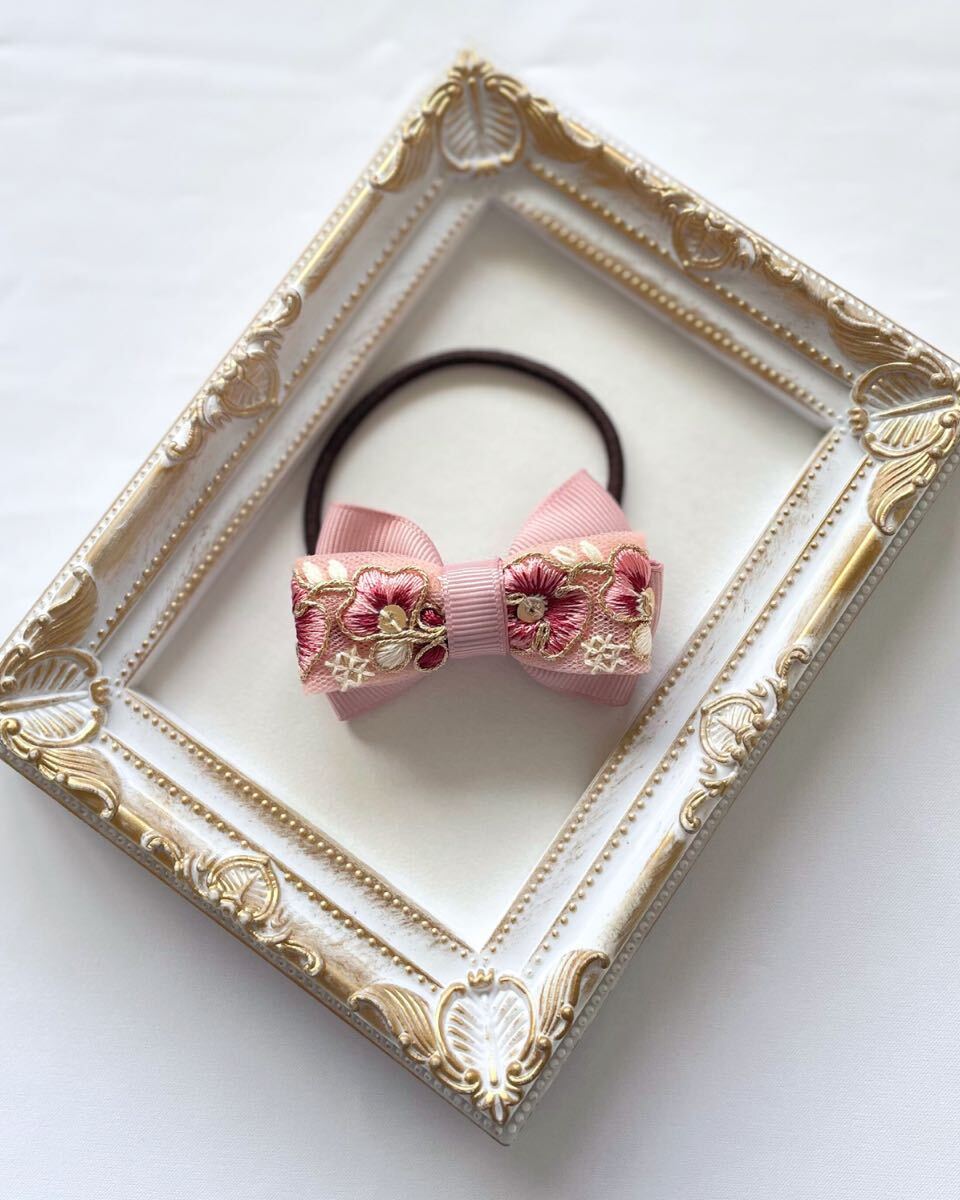 - ★★ハンドメイド84 ヘアゴム リボン インド刺繍リボン ヘアアクセサリー★★