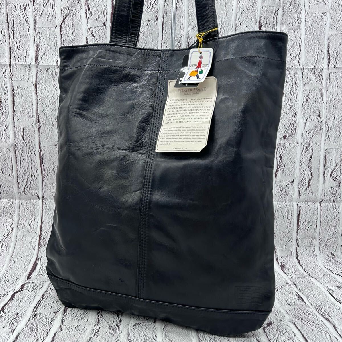> 【未使用タグ付】PORTER / FRANK 198-01310 ポーター フランク レザートートバッグ 馬革 ホースレザー 黒 ブラック 軽量 薄型 肩掛け