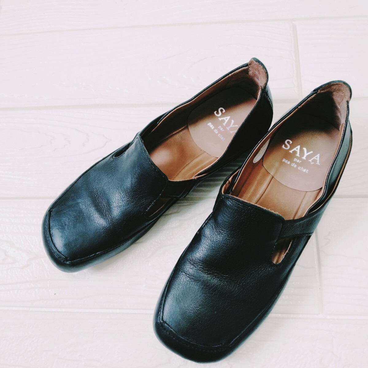 > RABOKIGOSHI Saya*ラボキゴシ*サヤ*フラットシューズ*スクエトゥ*黒*22cm**本革*レザー*スリッポン*プラット製法*50626*靴