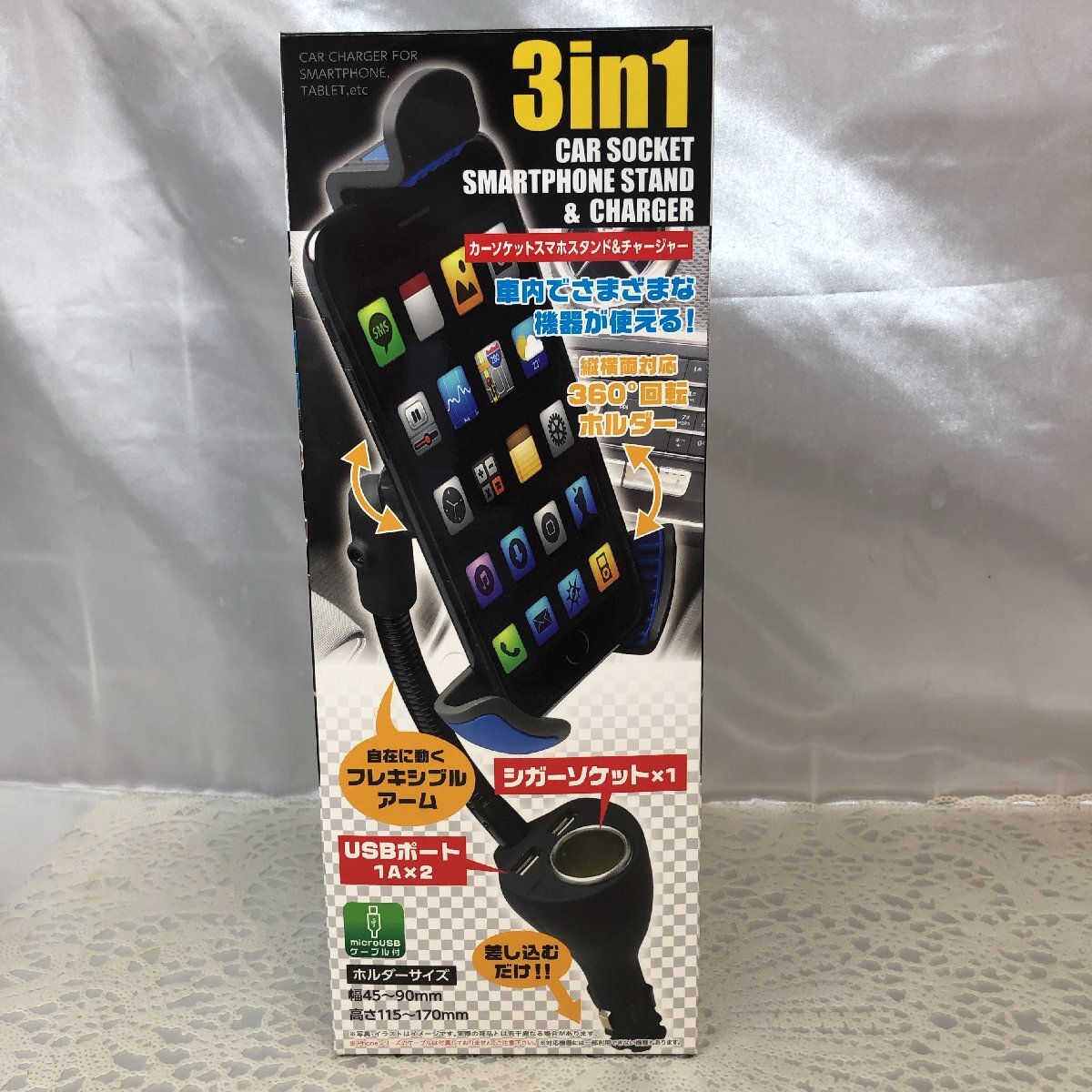 - 【未使用/保管品/KSH】3in1 カーソケットスマホスタンド&チャージャー 車載スマホ ホルダー ブルー ピーナッツ・クラブ MZ0523