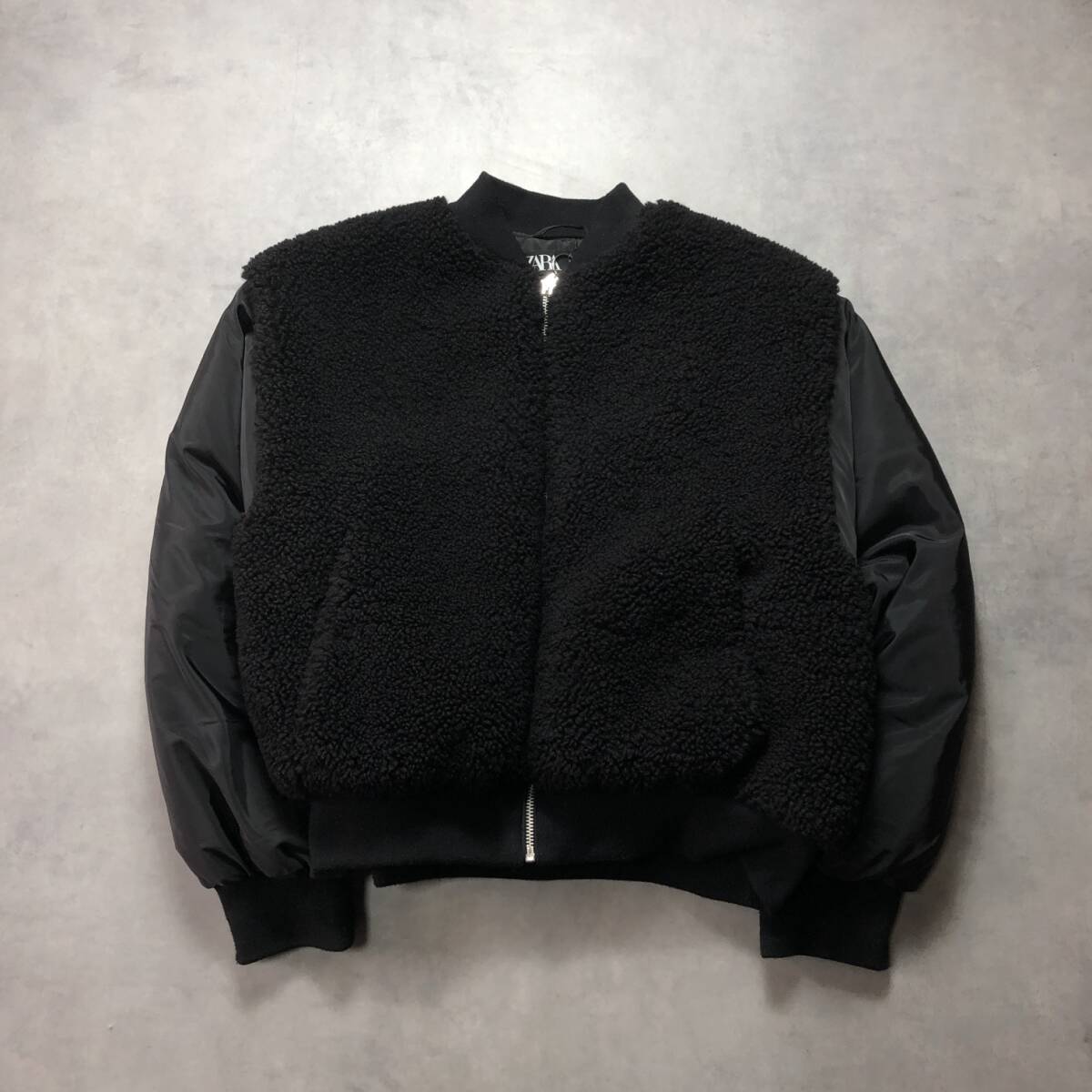- WQ305●ZARA:ボア切り替え中綿ブルゾン ●S● 黒 ジャンパー ザラ