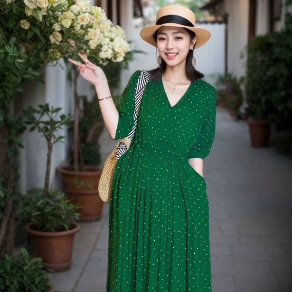 > mc 0705 半袖 ポケット ワンピース ゆったり オシャレ 裾広がる 通気性手触り抜群 肌に優しい ドレープ性 大人可愛 着丈120㎝ 柄75