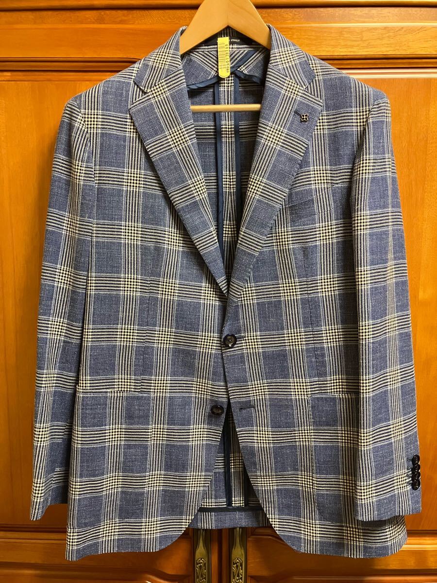 > タリアトーレ モンテカルロ ジャケット 50 ラペルピン付 ブルー グレンチェック 本切羽 本開き サマージャケット 白洋舎Rクリーニング済