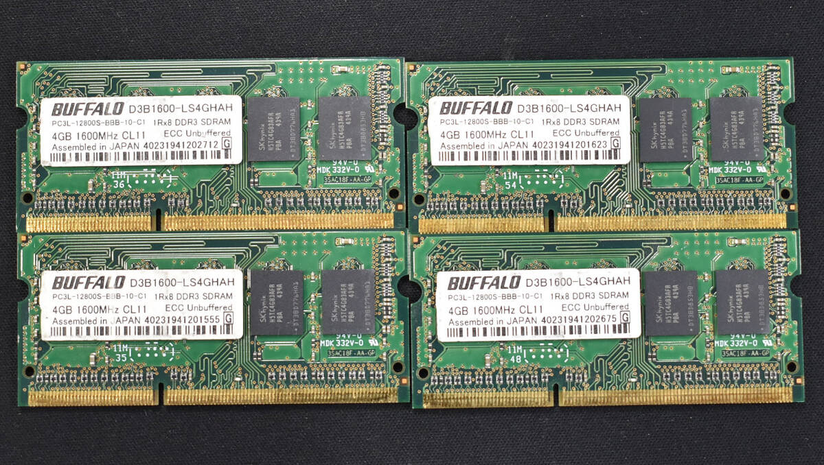 - 4GB 4枚組 (合計 16GB) ECC SODIMM PC3L-12800S DDR3-1600 S.O.DIMM 204pin サーバー/ワークステーション向け (管:SB0389 x2s