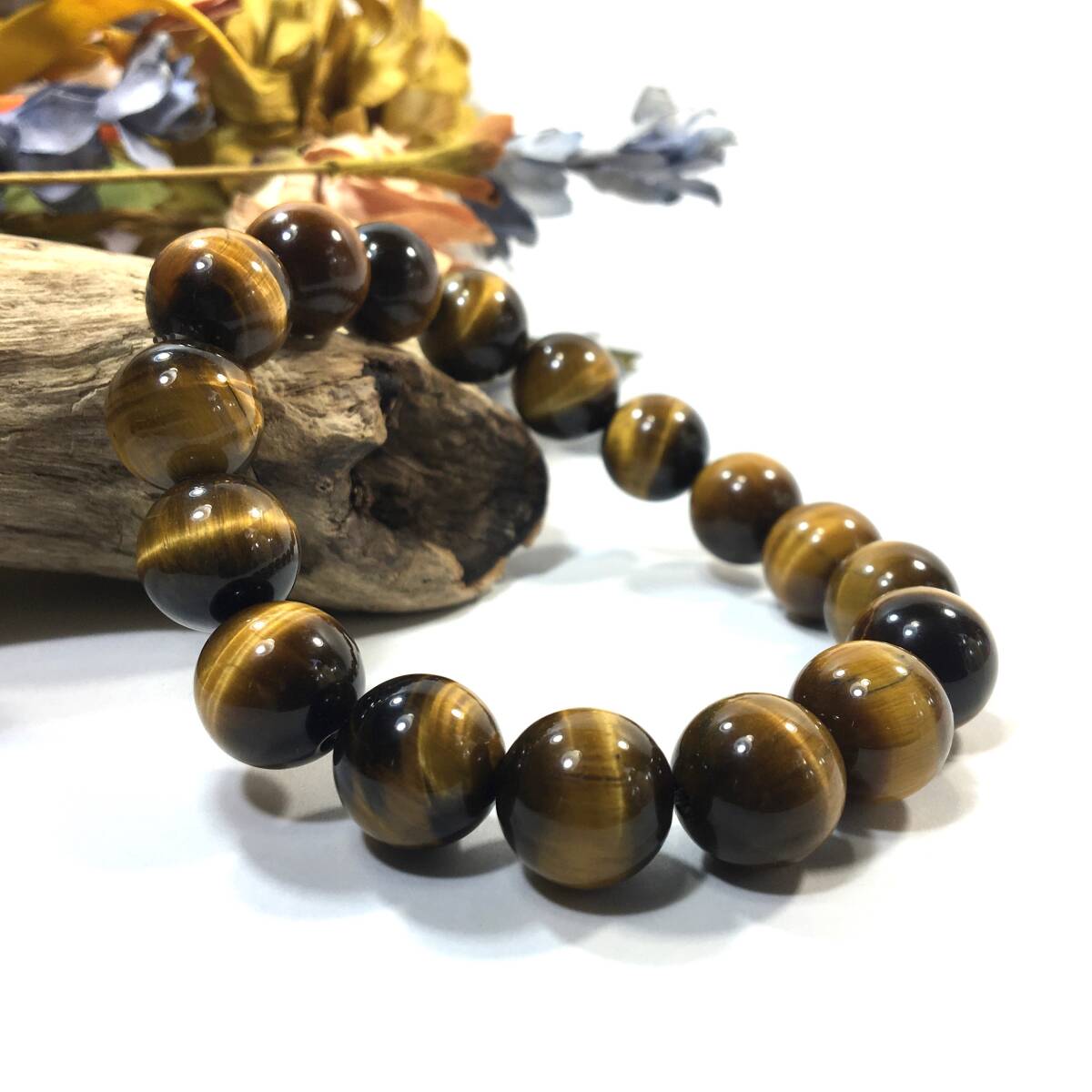 - タイガーアイ パワーストーン ブレスレット 12mm 天然石ブレス シンプル 開運 浄化 数珠ブレス メンズ 男性