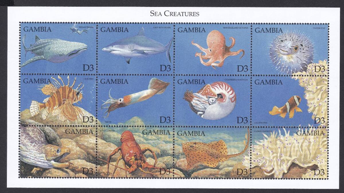- ガンビア 海洋生物(12種小型シート) MNH