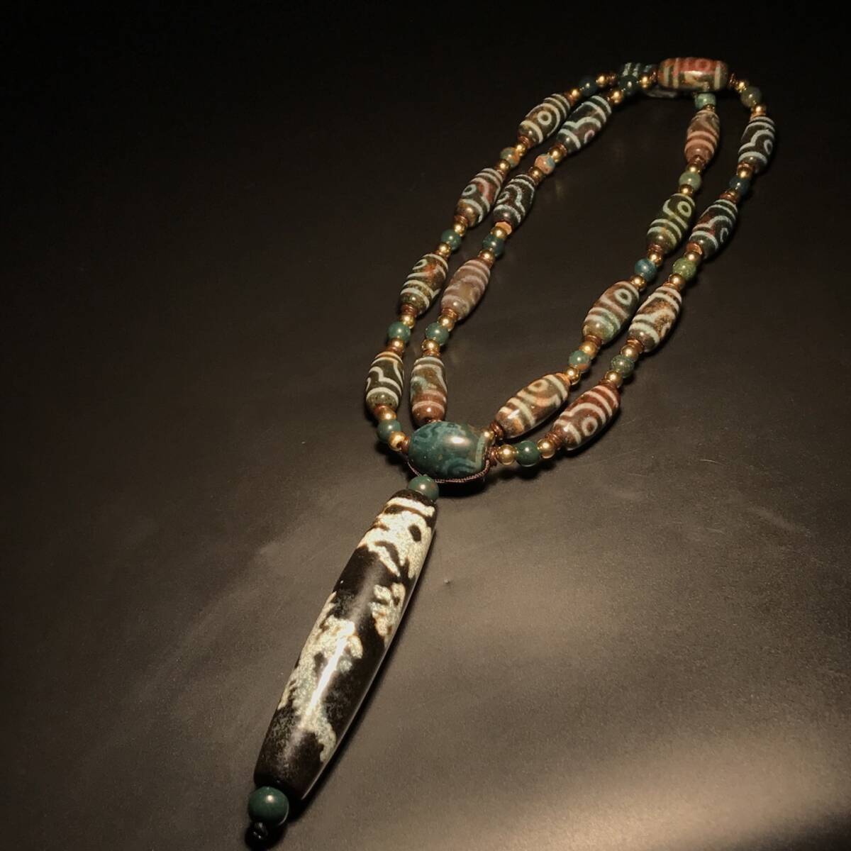 - 清 古瑪瑙彫 二眼天珠 五爪神龍象雄天珠 仏珠 高油 項鏈 箱付 置物擺件 時代物 古董品 骨董 旧家藏出 唐物 中国古玩 古美術品