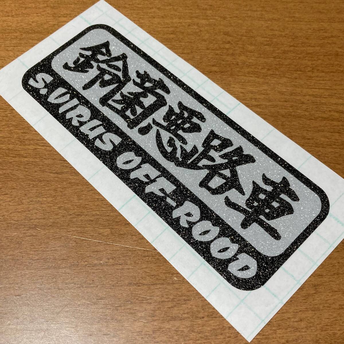 - 限定カラー シルバーラメ系×ブラックラメ系 鈴菌悪路車 ロゴ カッティングステッカー ジムニー スズキ車