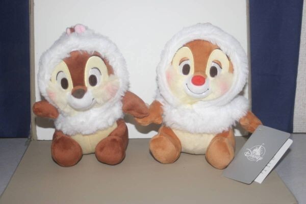 - ディズニーストア チップ&デール ホワイトフード ぬいぐるみ セット 約17cm PLUSH Disney Store Chip & Dale ふわふわ
