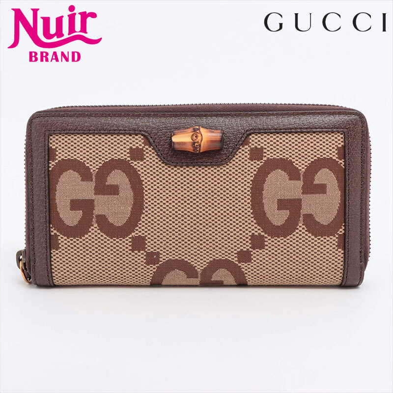 - グッチ GUCCI 長財布 ジャンボGG バンブー 658634 キャンバス×レザー ラウンドジップウォレット ブラウン