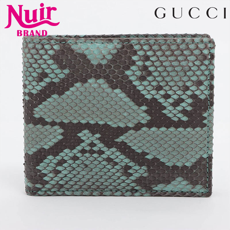 - グッチ GUCCI 二つ折り財布 365475 レザー×パイソン コンパクトウォレット グリーン
