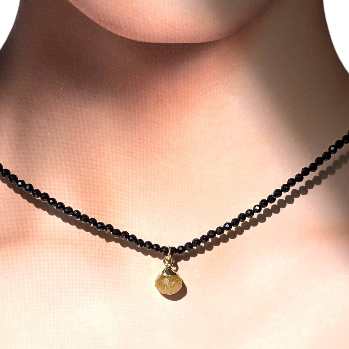 > 大人気 ブラックスピネル ネックレス ゴールドルチル ブリオレットカットチャーム 高級感抜群 アジャスター付 サイズもオーダーメイド