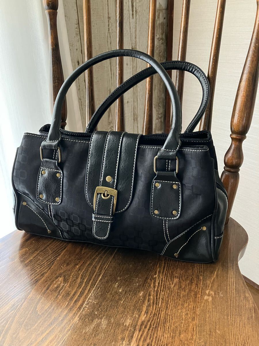 - ハンドバッグ ブラック系 ナイロン合皮 美品 匿名発送 兵庫県より 肩掛け ポケットたくさん