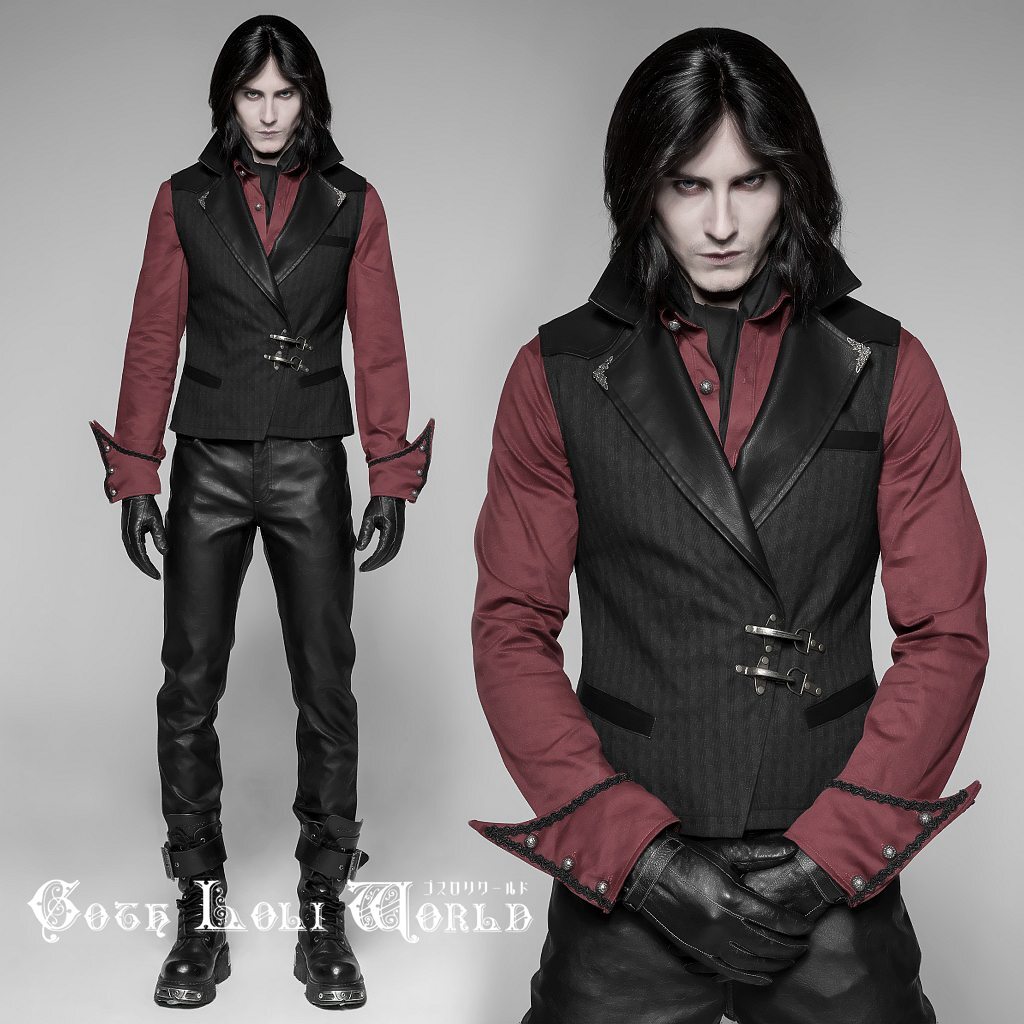 - WY-929-S うっすらチェック柄異素材切り替え襟 ベスト メンズ ゴスロリワールド ゴシック パンク ロック ロリィタ ビジュアル系 V系