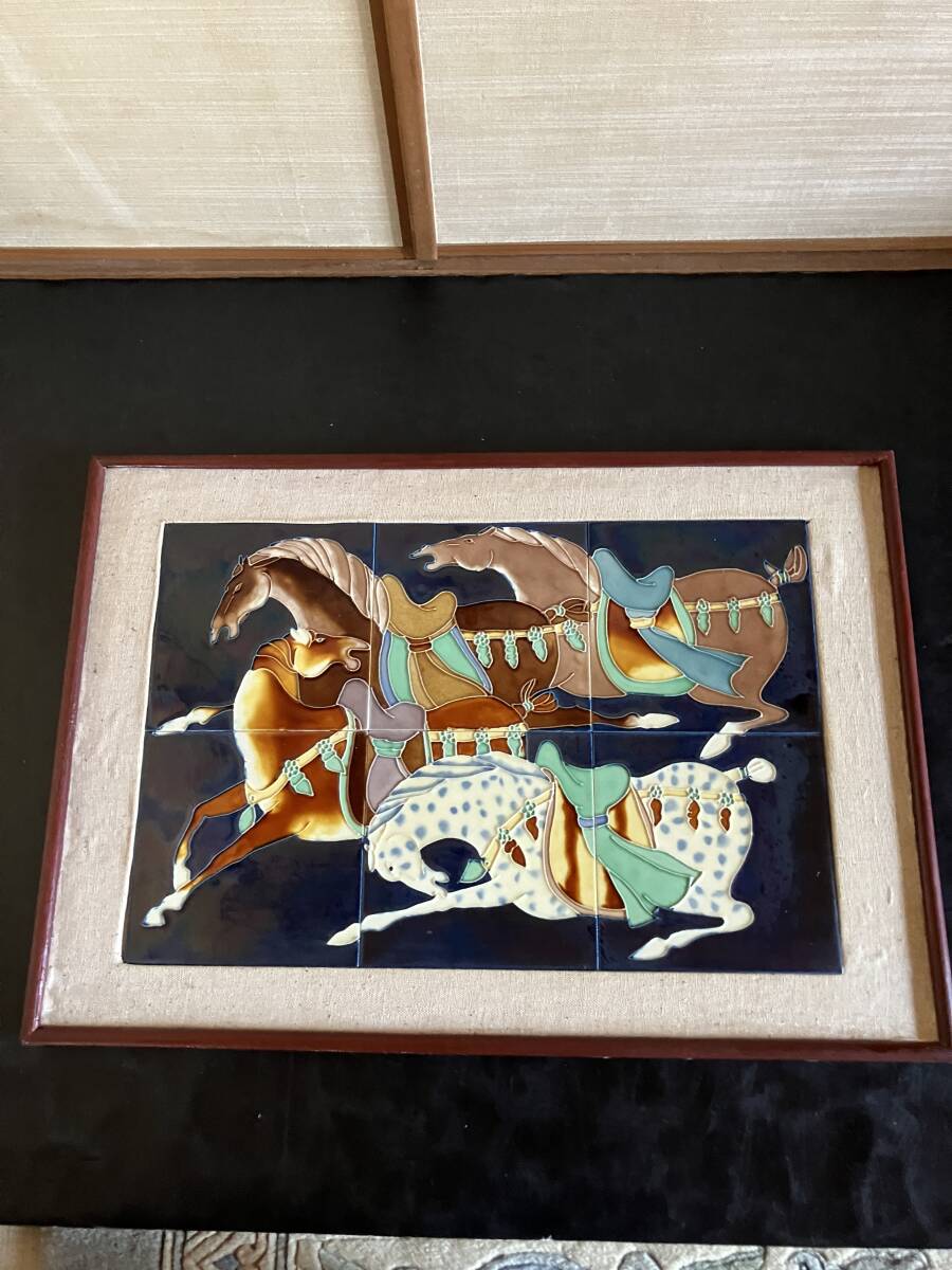 - 陶器製絵画 陶板画 馬揃 58x41x2cm
