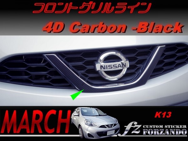- マーチ K13 後期 フロントグリルライン 4Dカーボン調 ブラック 車種別カット済みステッカー専門店 fz march