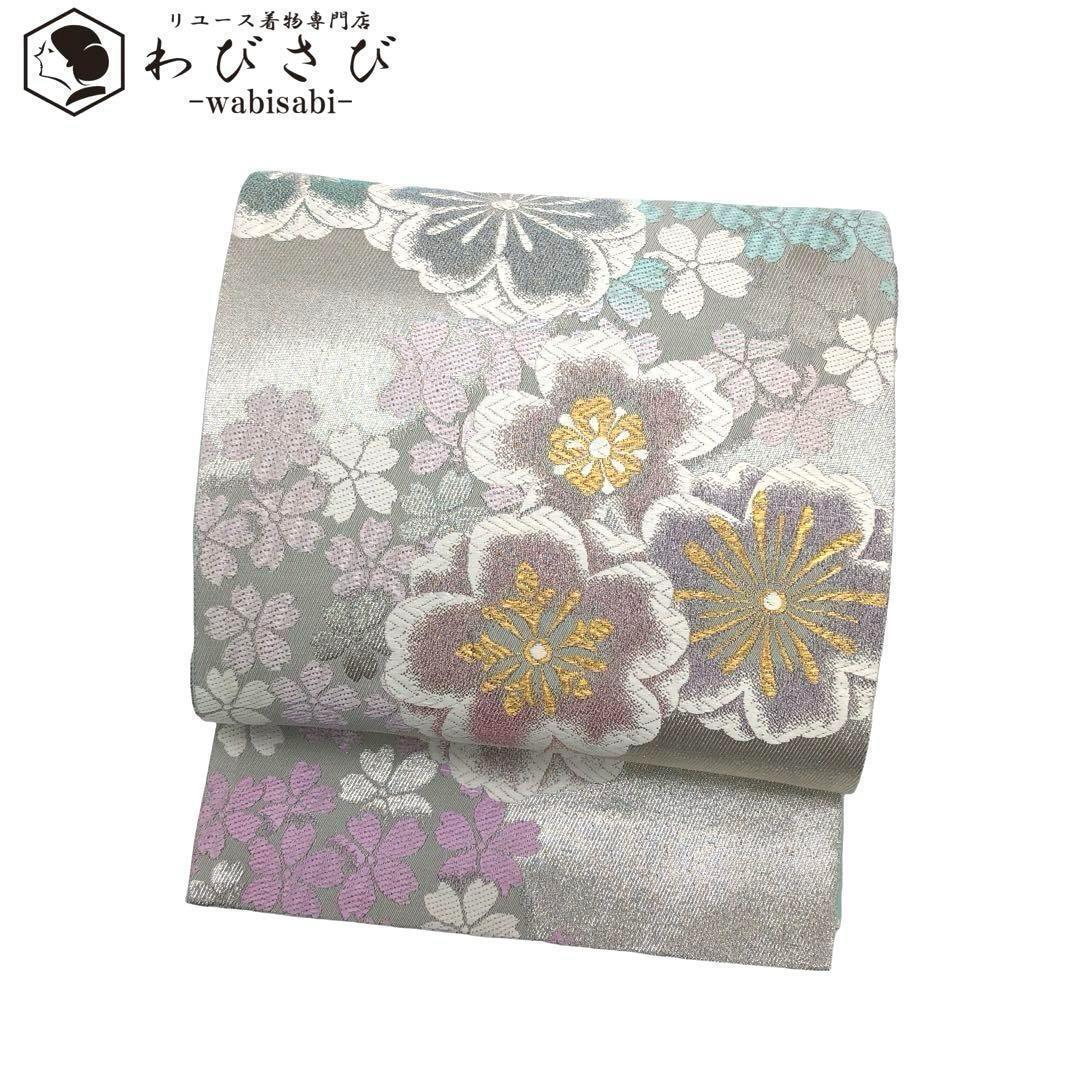 - 袋帯 美しい桜の花模様 パステル色暈し 金銀糸 銀色 振袖 O-3252 着物 きもの kimono 和服 和装 中古 リサイクル着物 【送料無料】