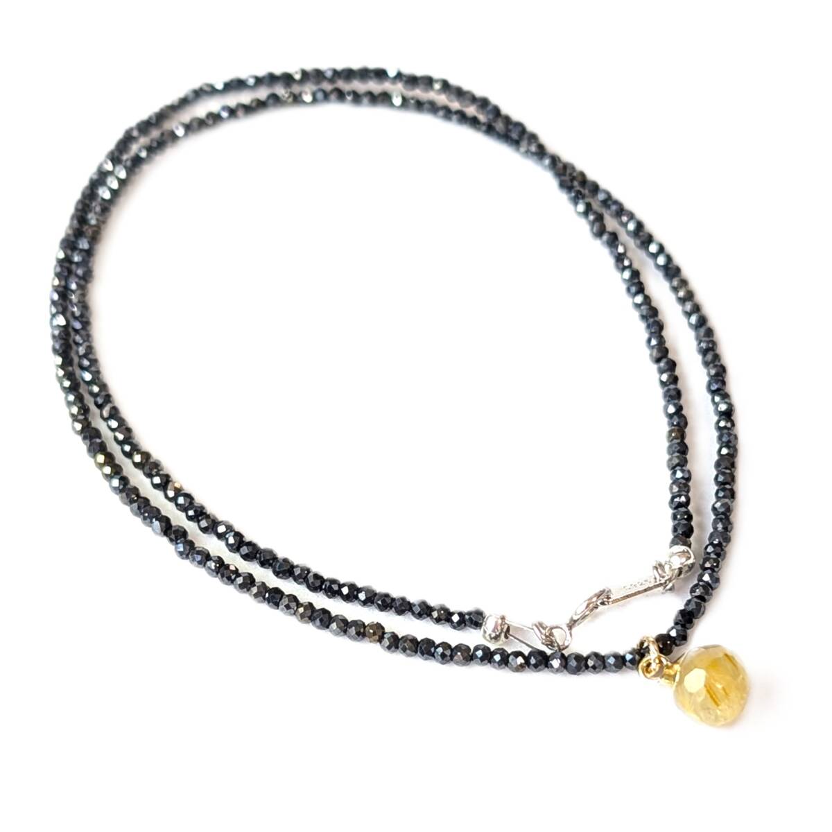 - ゴールド ルチルクォーツ カットチャーム チタン加工 スピネル ネックレス 輝きが半端ない 長さオーダー可 プレゼント 父の日に贈る ギフト