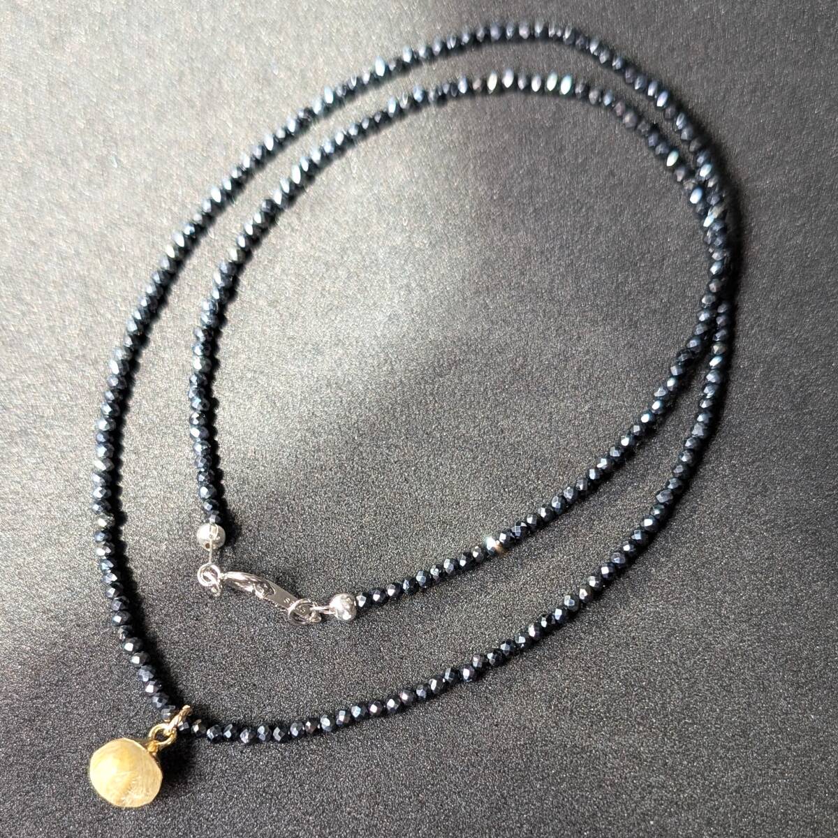 - 金運を呼び込む パワーストーン ゴールドルチル ブリオレットカットチャーム チタン加工 スピネル ネックレス 父の日の贈り物 ギフト