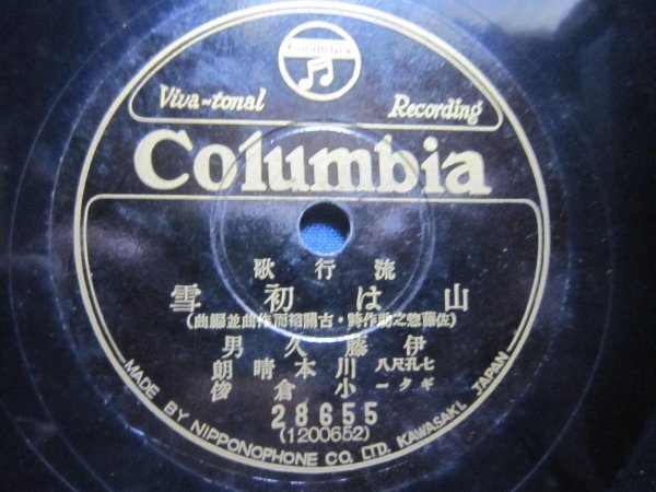- コロムビア流行歌SP盤199★伊藤久男/山は初雪★音丸/浮き寝鳥★美麗盤。SPレコード
