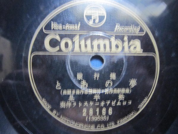- コロムビア流行歌SP盤208★松平晃/夢のあと★赤坂小梅/晴れて逢う夜は★文句カード付き美麗盤。SPレコード