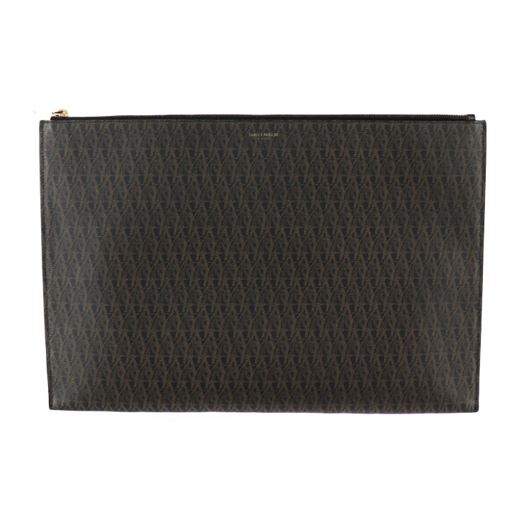 > 美品 サンローランパリ クラシック トワル モノグラム セカンドバッグ 378261 PVC ブラウン ゴールド金具【本物保証】