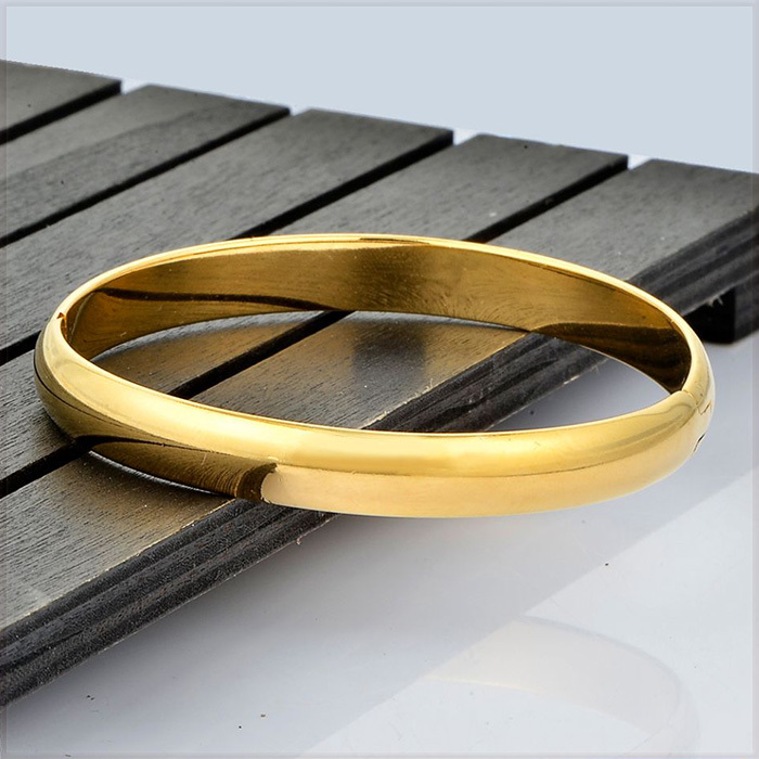 > [BANGLE] 18K Gold Plated 甲丸内平打ち シンプル スムース デザイン ゴールド リング バングル 9.5xφ64mm (30g) 【送料無料】
