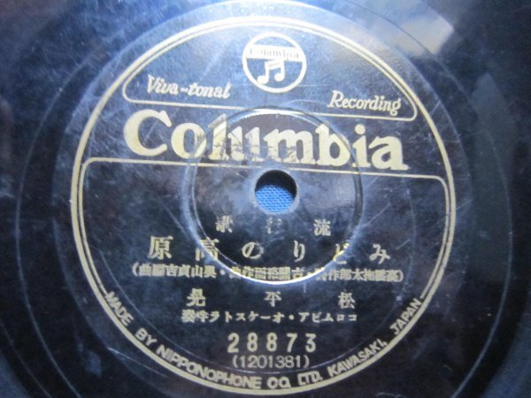 - コロムビア流行歌SP盤225★松平晃/緑の高原★二葉あき子/山の村雨★SPレコード