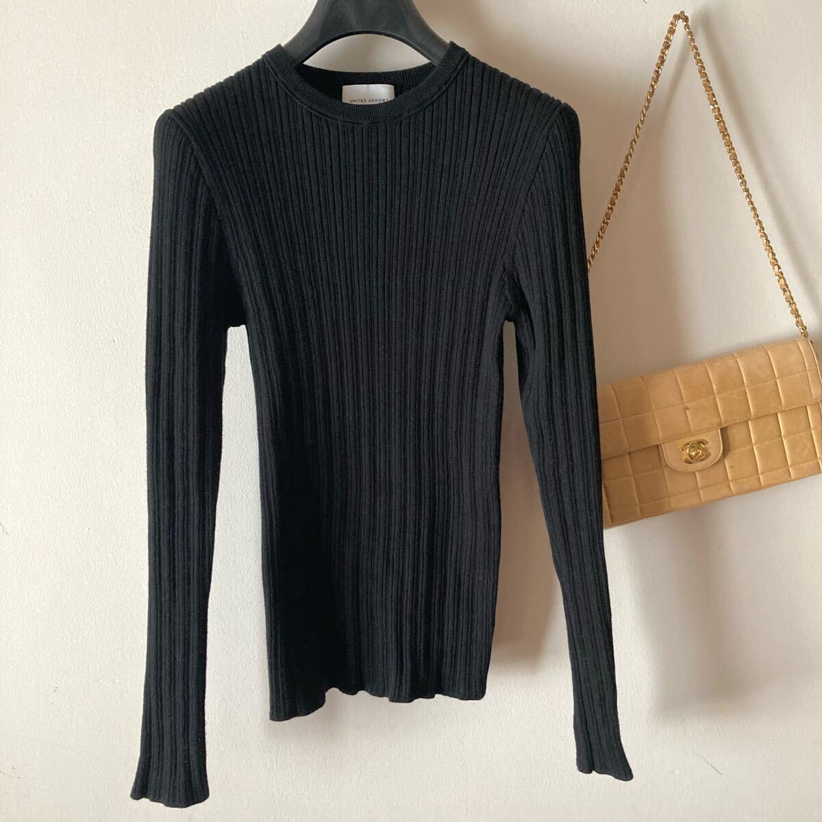 - 新品/ユナイテッドアローズ*ハイゲージ さらさらコットン クルーネックジャージーリブニット*ブラック