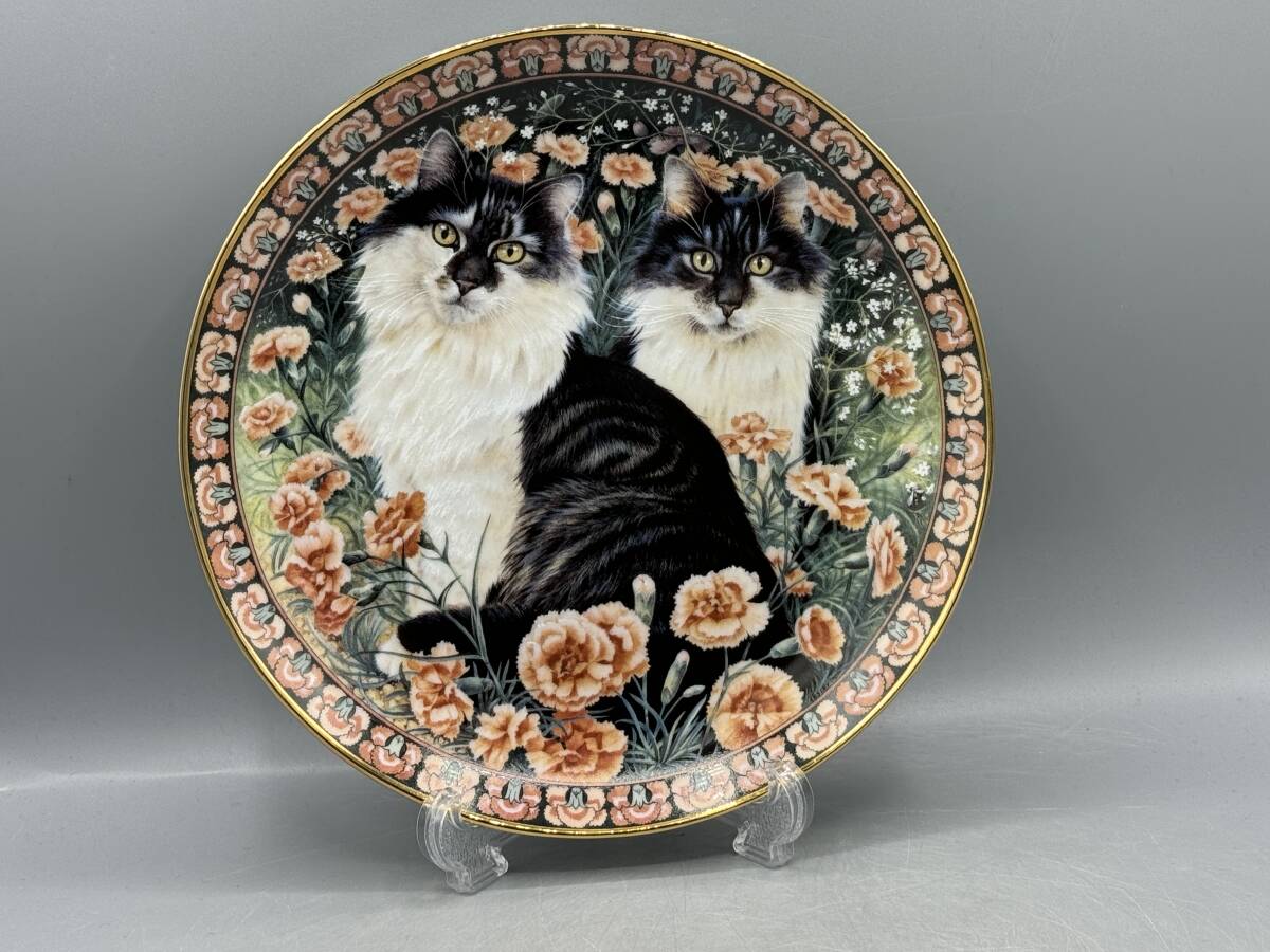 - ダンブリーミント レズリー レスリー アン アイボリー カーネーション ネコ 絵皿 飾り皿 お花 囲まれた ねこ 猫 (#-12)