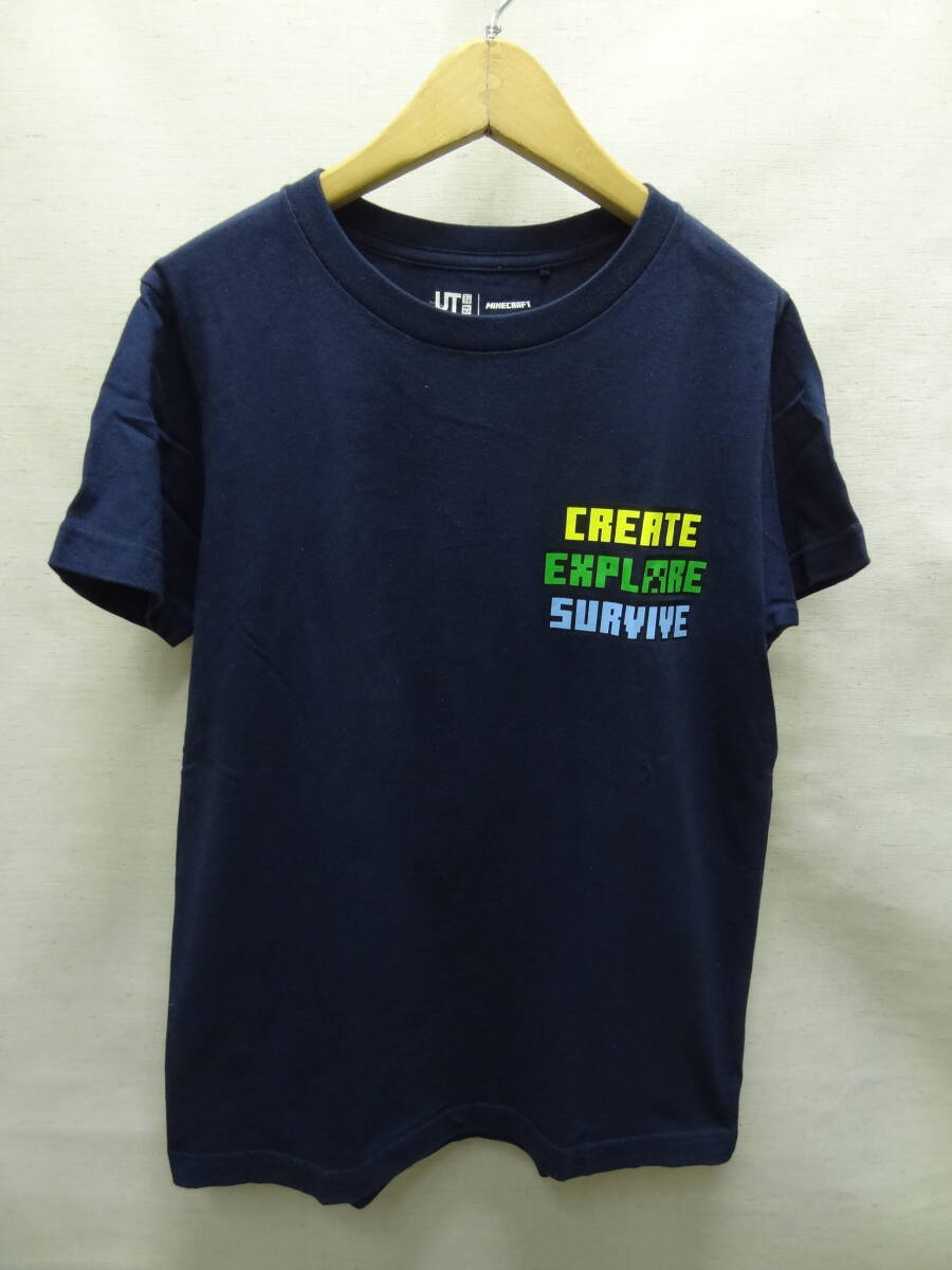 - 全国送料無料 ユニクロ UNIQLO UT X マインクラフト MINECRAFT 子供服キッズ男の子 左胸&バック プリント 紺色 半袖Tシャツ 150③