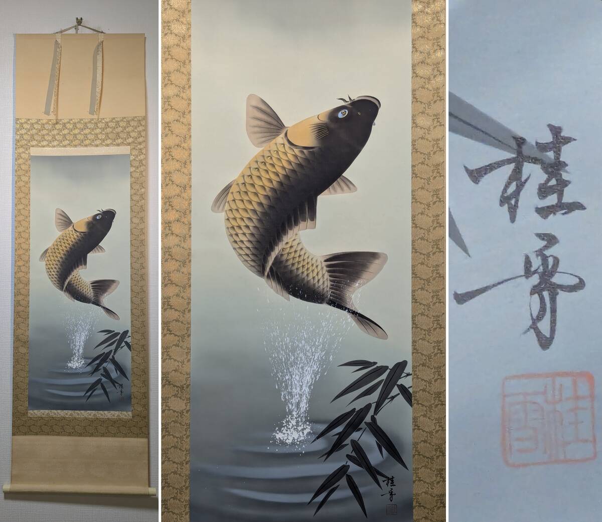- 【真作】掛軸 鯉之図 立身出世の象徴 日本画 精緻な筆致の逸品 共箱入 S72