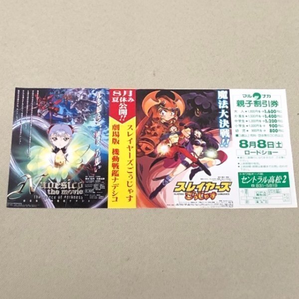 - 機動戦艦ナデシコ(劇場版)&スレイヤーズごぅじゃす 親子割引券(当時物未使用)(セントラル高松2は、閉館)1枚