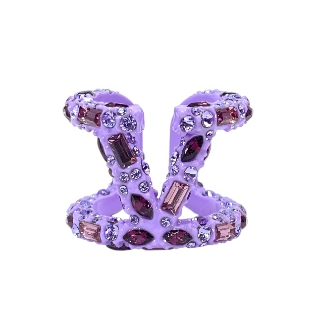 - 【新品】VALENTINO GARAVANI ヴァレンティノ ガラヴァーニ リング 指輪 アクセサリー Vロゴ メタル ラインストーン パープル (11号)