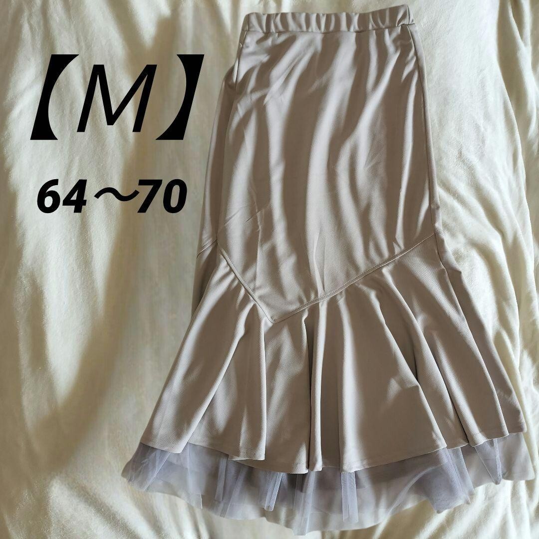 - 【新品】マーメイドスカート【M】 ティアード レース ライトグレー 無地 ウエストゴム