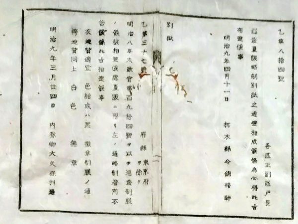 - f25051911〇明治布告布達 巡査夏服略服 巡査制服 栃木県 明治9年〇和本古書古文書