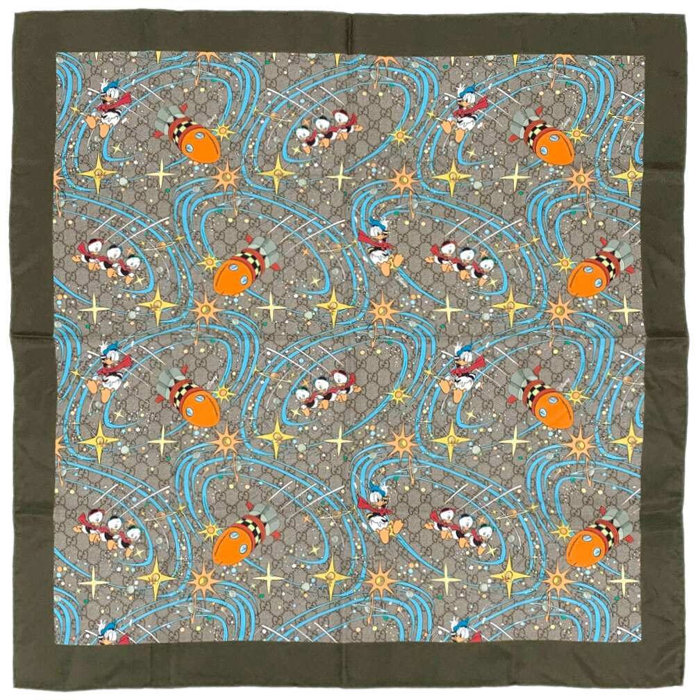 - 未使用 グッチ スカーフ 649635-9769 GUCCI × DISNEY ディズニー シルク 100% ドナルドダック プリント 90×90 ベージュ スカイブルー