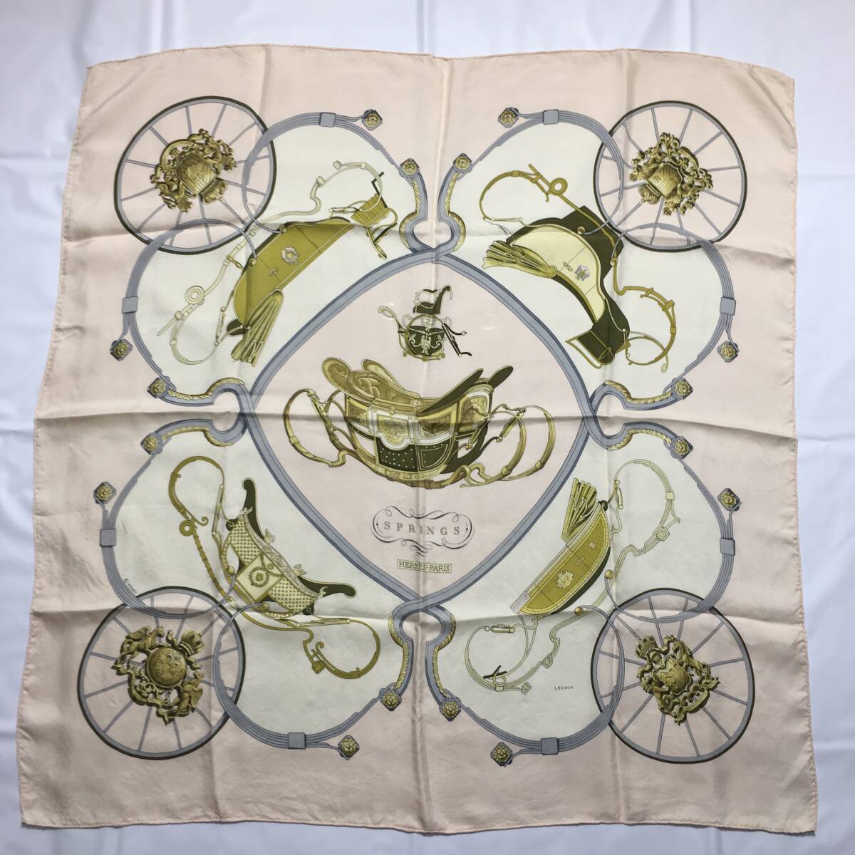 - 74B42|美品|エルメス カレ 90 スカーフ ライトピンク マルチカラー