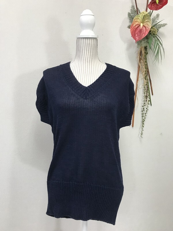 - 4001 【 HELIOPOLE 日本製 綿100% 半袖 ニット セーター 】レディース サイズ:38 色:ネイビー