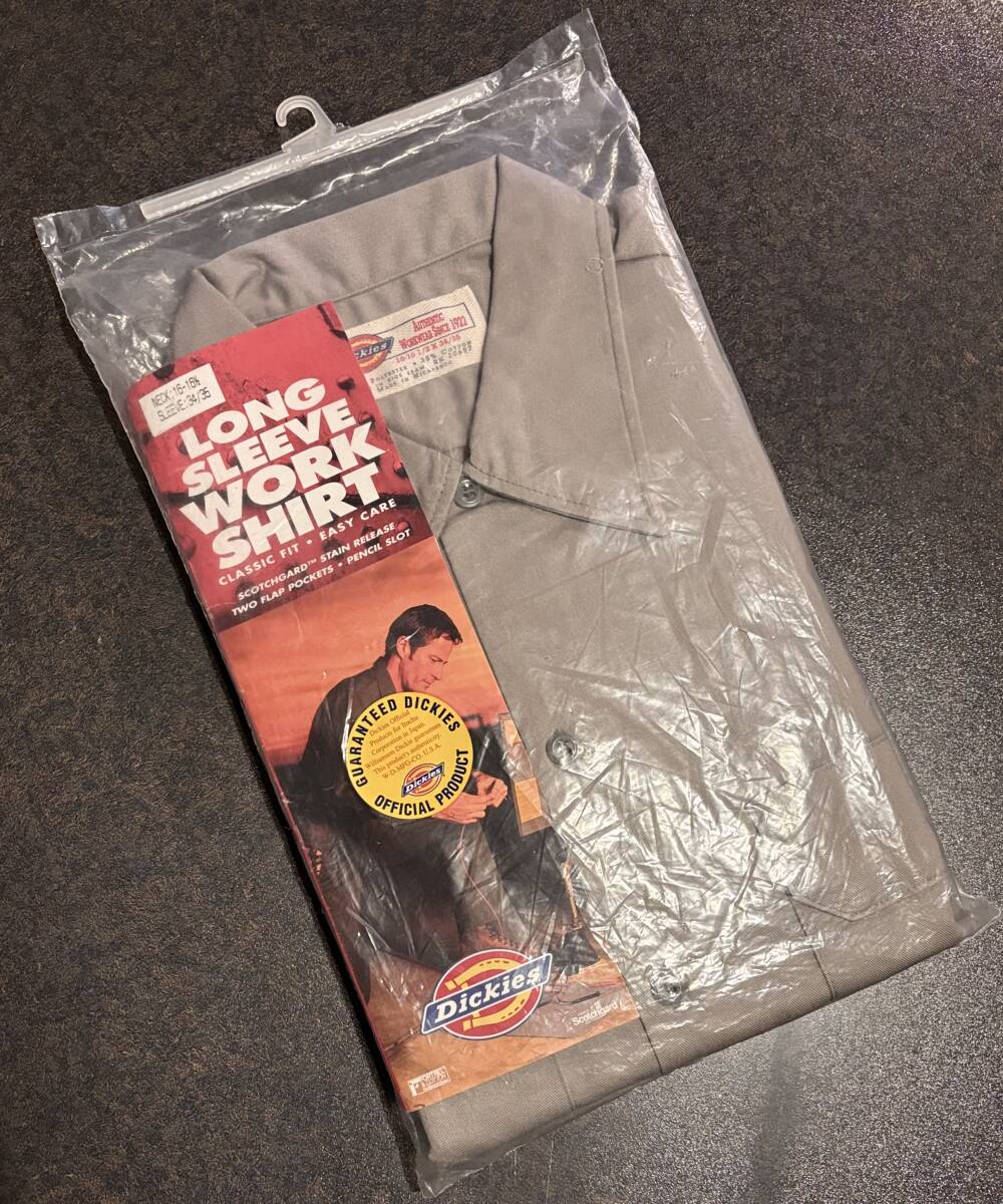 > XL98年デッドストック90sオールドDickiesワーク長袖シャツ16-16.5ビッグサイズ無地チャコール系グレー90年代ディッキーズy2kビンテージ