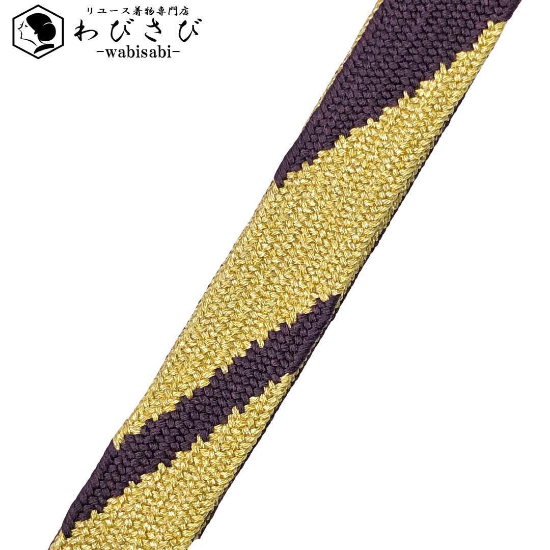 > 和装小物 帯締め 正絹 高麗組 平組紐 組紐 紫烏色 金糸 C-5961 着物 きもの kimono 和服 和装 中古 リサイクル着物 【送料無料】