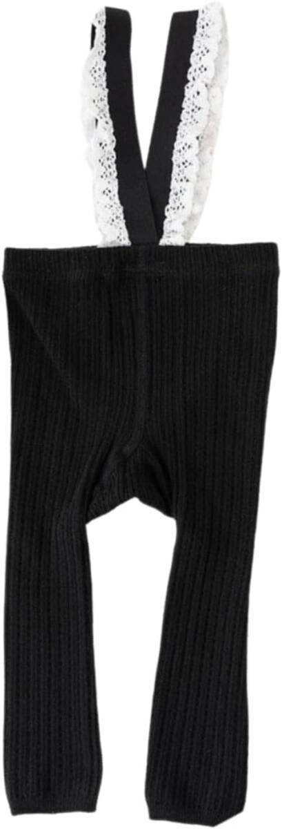 - 新品 ブラック Sサイズ レース付き ベビー服 レギンス サスペンダー レッグウェア 無地 伸縮性 韓国子供服 春 秋 冬 男の子 女の子
