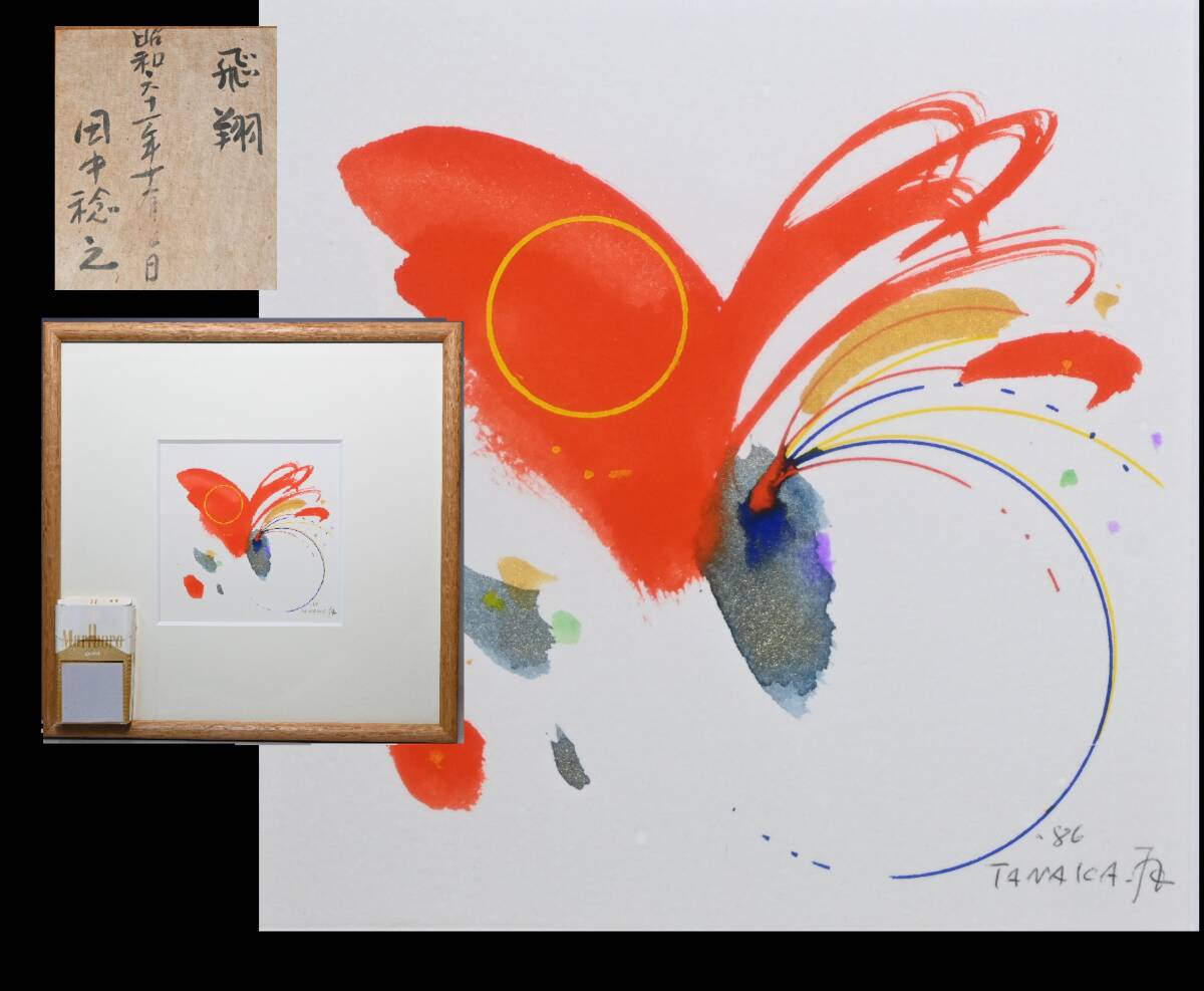 > 真作 田中稔之 水彩画『飛翔』昭和61年11月 直筆サイン 額装 1986年作 山口県防府市生 向井潤吉に師事 行動美術協会会員 抽象画 絵画