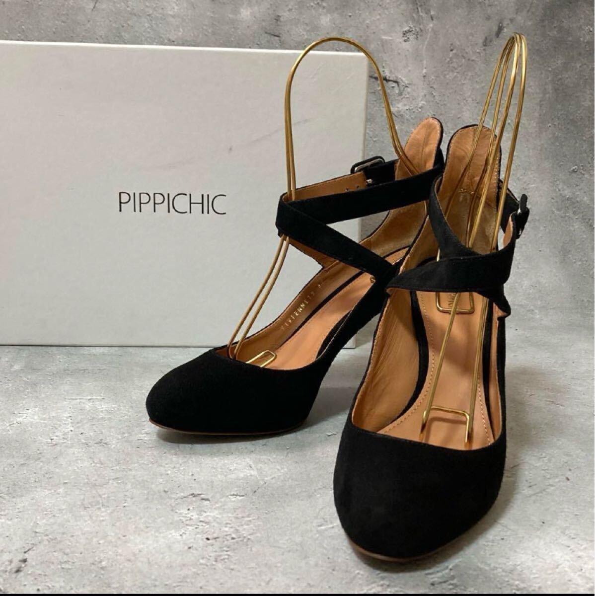 > ピッピシック PIPPICHIC (37) ストラップパンプス スウェード 黒 ハイヒール ピンヒール スエード ラウンドトゥ アーモンドトゥ 箱付き