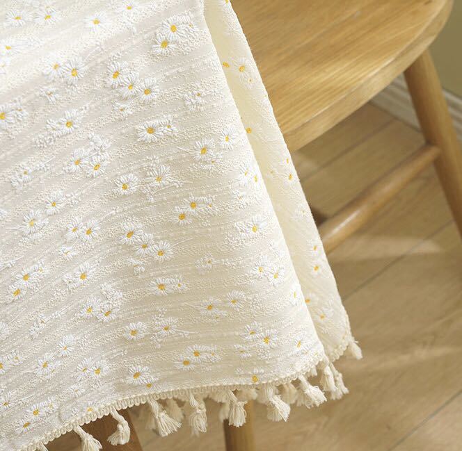 - 新品 テーブルクロス マルチカバー 家具防塵カバー 60*60 コスモス花柄 刺繍 可愛い 柔らかい フリンジ付き 綿