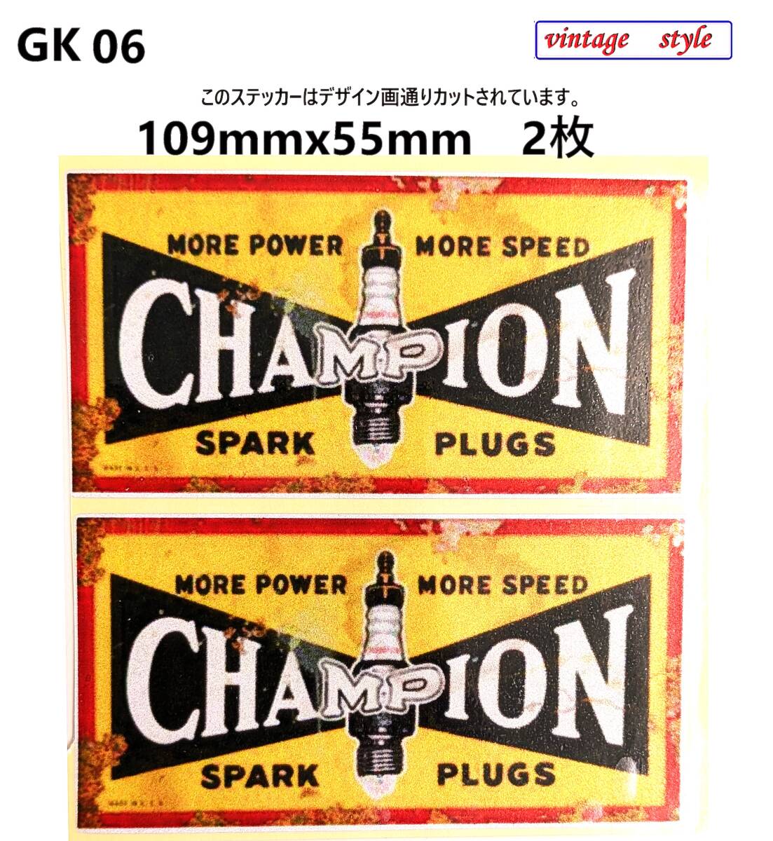 > GK06-05 特価 キラキラ ヴィンテージスタイル 縁赤 チャンピオン スパークプラグ オイル ガソリン ダメージ加工 ステッカー